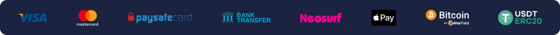 Banking covers mainstream cards, a prepaid/e-wallet option, and major cryptocurrencies. General minimum deposit is €20 (or equivalent). Method-specific deposit minimums: $30 for Visa/Mastercard/Maestro/Neosurf/MiFinity. Crypto minimums vary by coin. Minimum withdrawal typically starts at €/$20 (regional equivalents: 200 NOK; 30 CAD/AUD/NZD; 90 PLN; 1,500 RUB; 2,400 JPY; or crypto thresholds below). KYC may be required prior to payouts; allow up to 72 hours for review.
